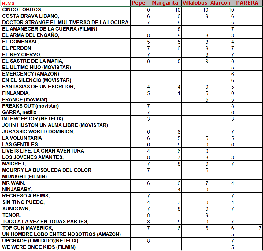 EL INSOPORTABLE PESO DE UN TALENTO DESCOMUNAL, divertida y entretenida historia donde Nicolas Cage se interpreta a sí mismo y analiza su carrera y su actual situación en una historia donde acaba en Mallorca en casa de un fan que tiene un guion que ofrecerle. Notable. 8 claquetas