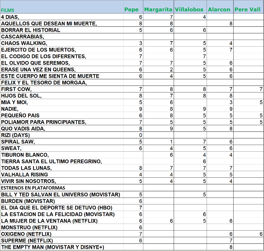 -CRUELLA,  entre la comedia histriónica y El diablo viste de Prada encontramos esta precuela de 101 dálmatas donde descubriremos porque y como Cruela De Vil se convierte en la malvada más adorada de los films Disney. Grandes las dos Emma, (Stone y Thompson), gran bso con una excelente selección de canciones, además de dinámica y llena de ritmo la  dirección de Graig Gillespie (Yo Tonya). 8 claquetas