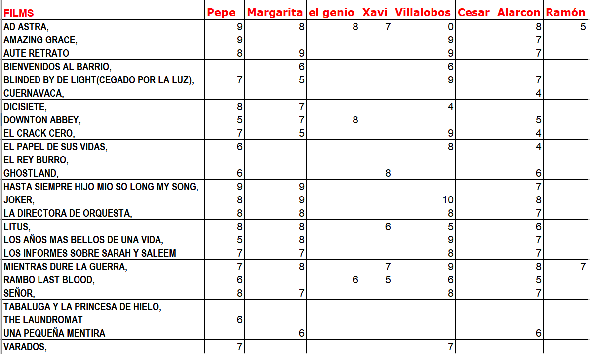 -ABUELOS, comedia amable sobre las persones de la tercera edad que son expulsados del mundo laboral, en edad muy temprana. Lo mejor su reparto (Carlos Iglesias, Ramon Barea, Roberto Alvarez. Opera prima de Santiago Requejo. La historia un poco increíble, pero entretenida. 6 claquetas
