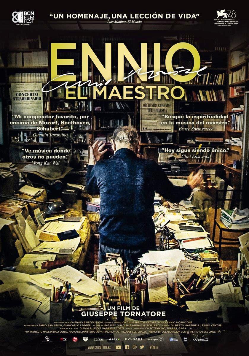 -ENNIO EL MAESTRO, dos horas y media magistrales sobre el gran maestro Morricone filmadas por uno de sus directores habituales Giuseppe Tornatore donde repasamos su mundo musical, personal y cinematográfico. 10 claquetas