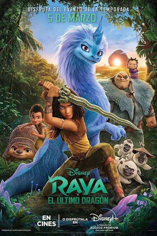 RAYA Y EL ULTIMO DRAGON, el último filme animad de Disney es una historia protagonizado por mujeres asiáticas, donde una princesa tiene que buscar la ayuda de los dragones para frenar el avanza de la oscuridad. Acción, humor, drama y una excelente animación. 8 claquetas