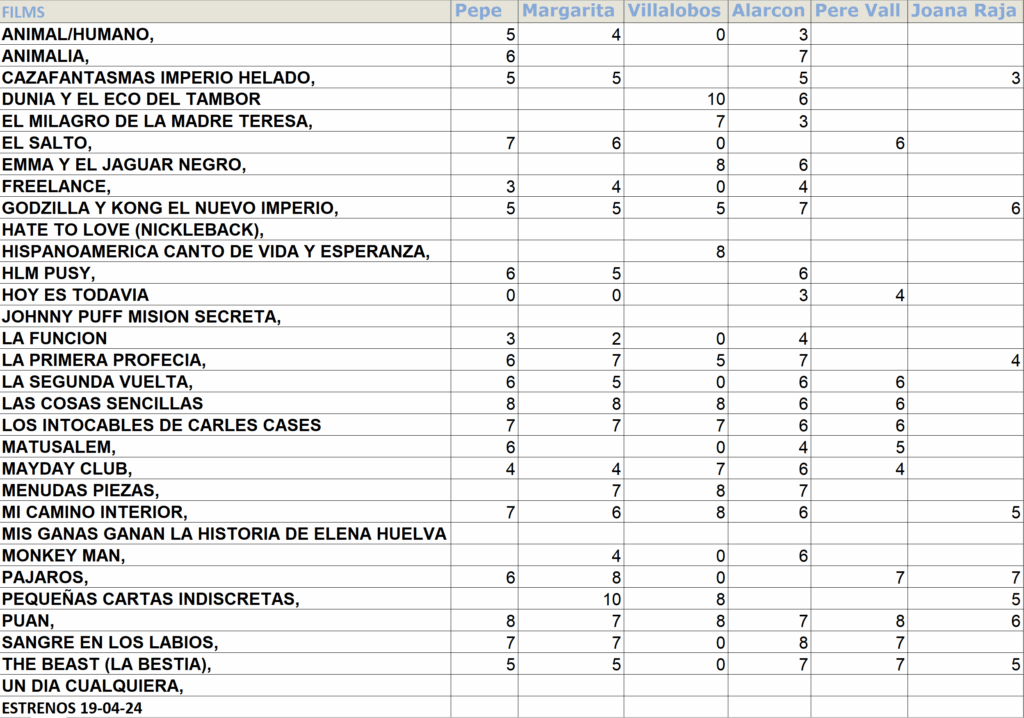 Os dejo el repaso a los estrenos de esta semana y la lista de claquetas actualizada. Gracias
